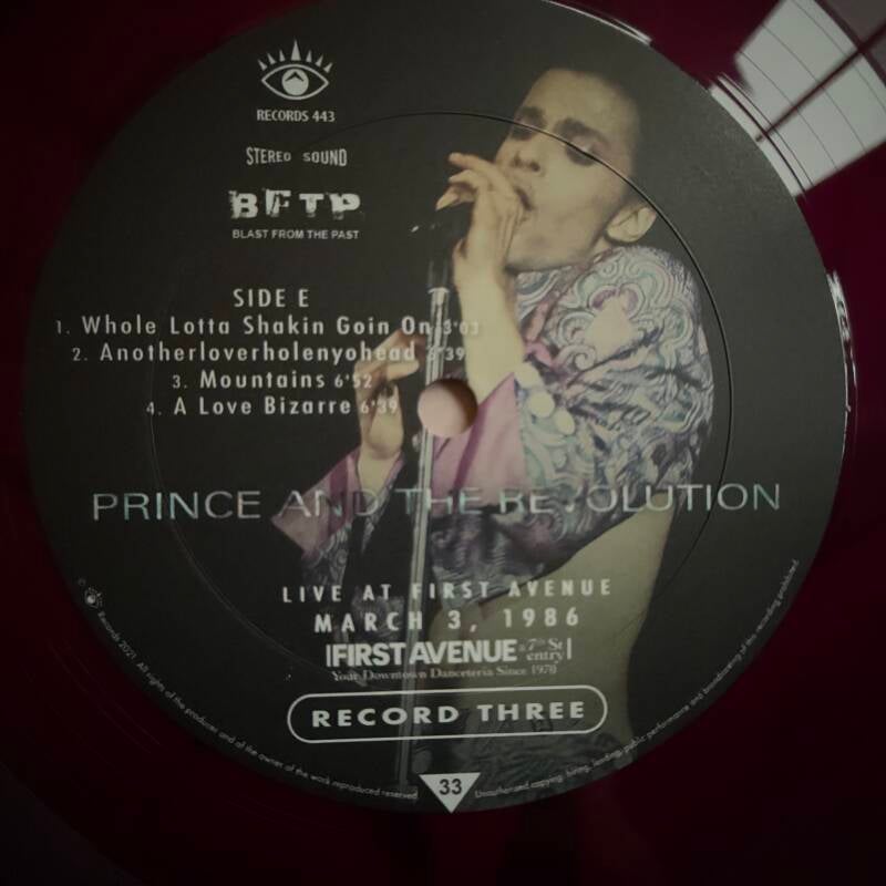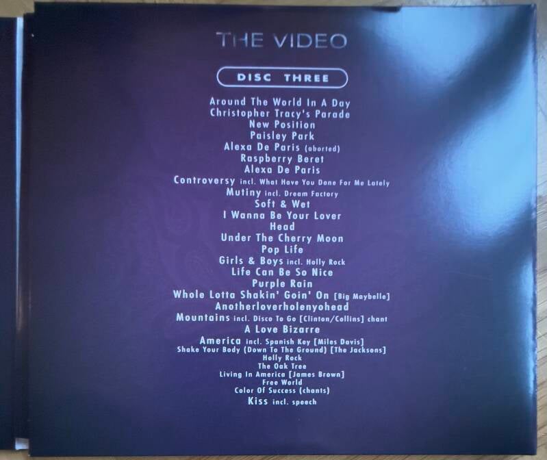 Notes: limited edition (200 copies), translucent purple vinyl, incl. 2-CD, DVD, booklet, poster, sticker, envelope, Paisley Park notepad, postcard, sheet with tourdates, folder, calendar and obis